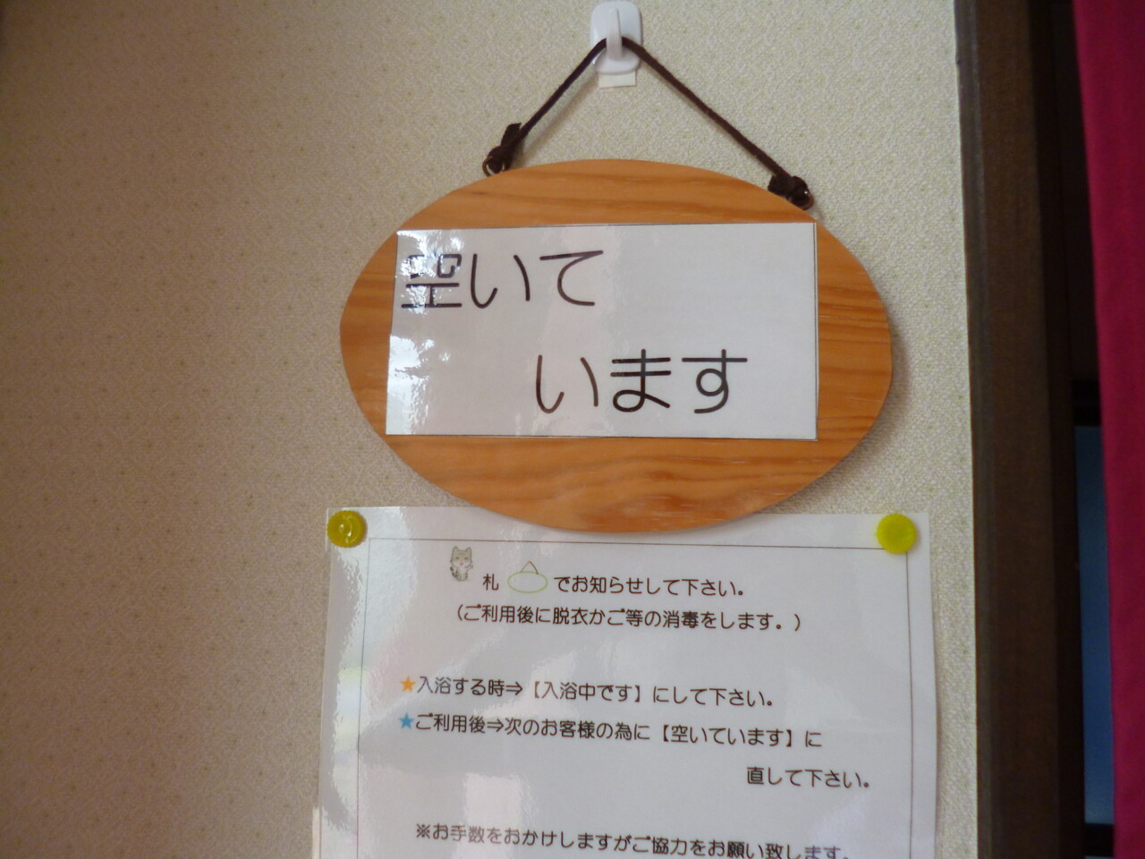 入浴する際には札を(入浴中です)にしてからお入り下さい。